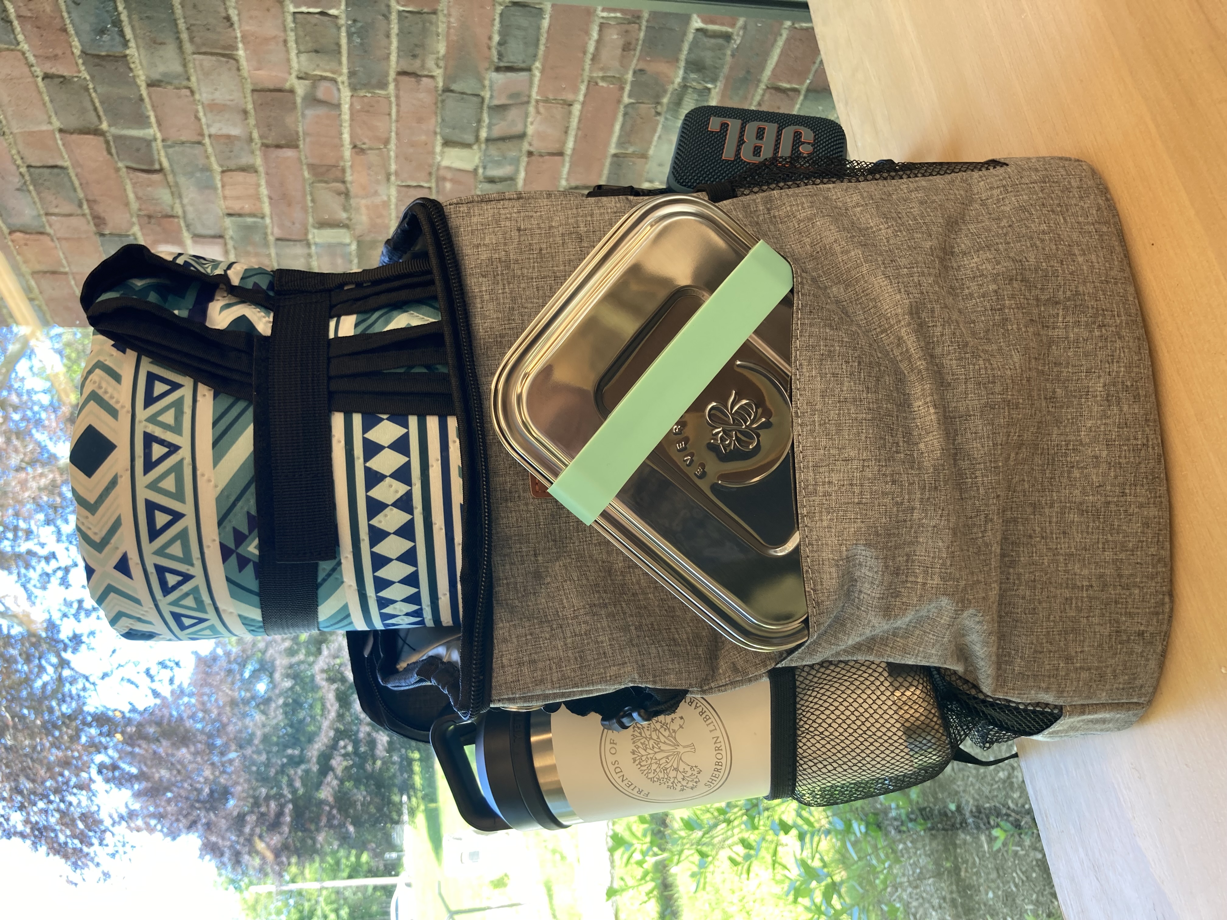 Cooler Bag with goodies including bluetooth speaker, picnic blanket, and Yeti bottle!